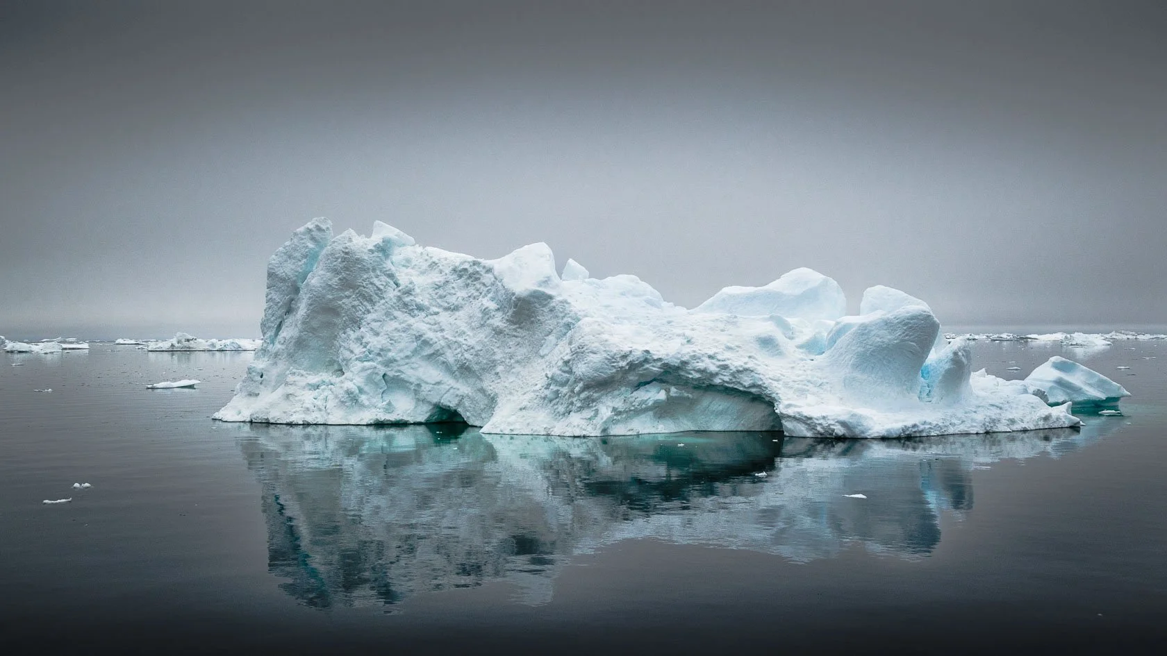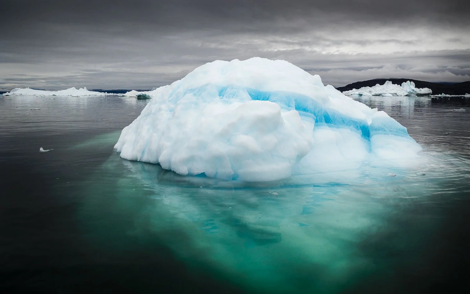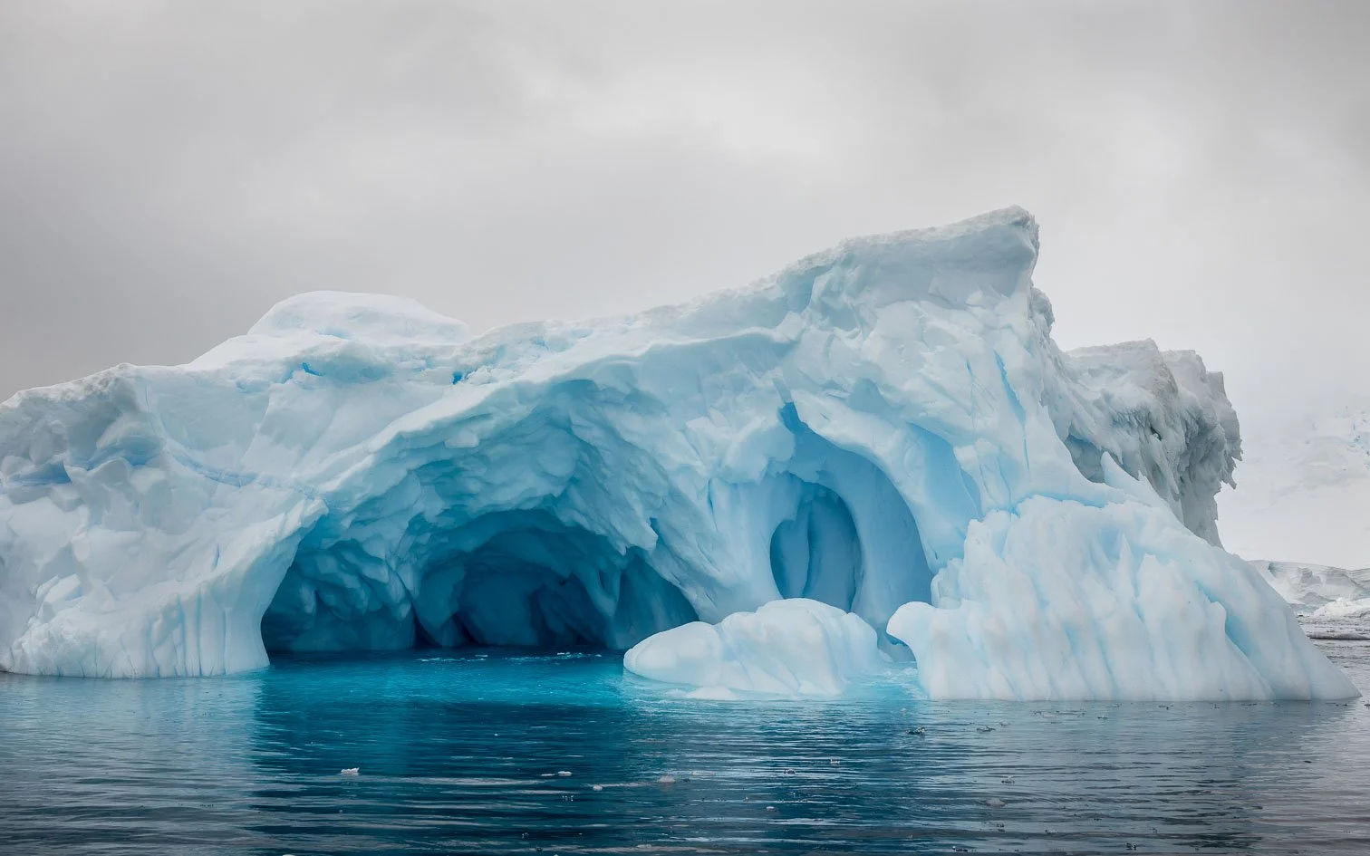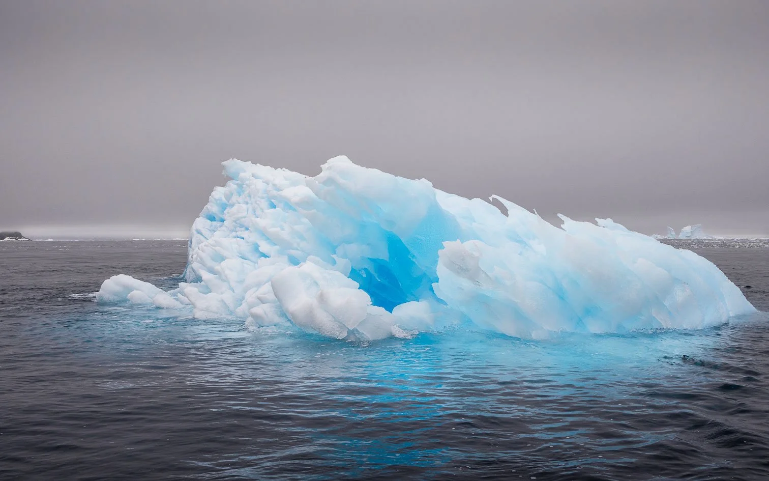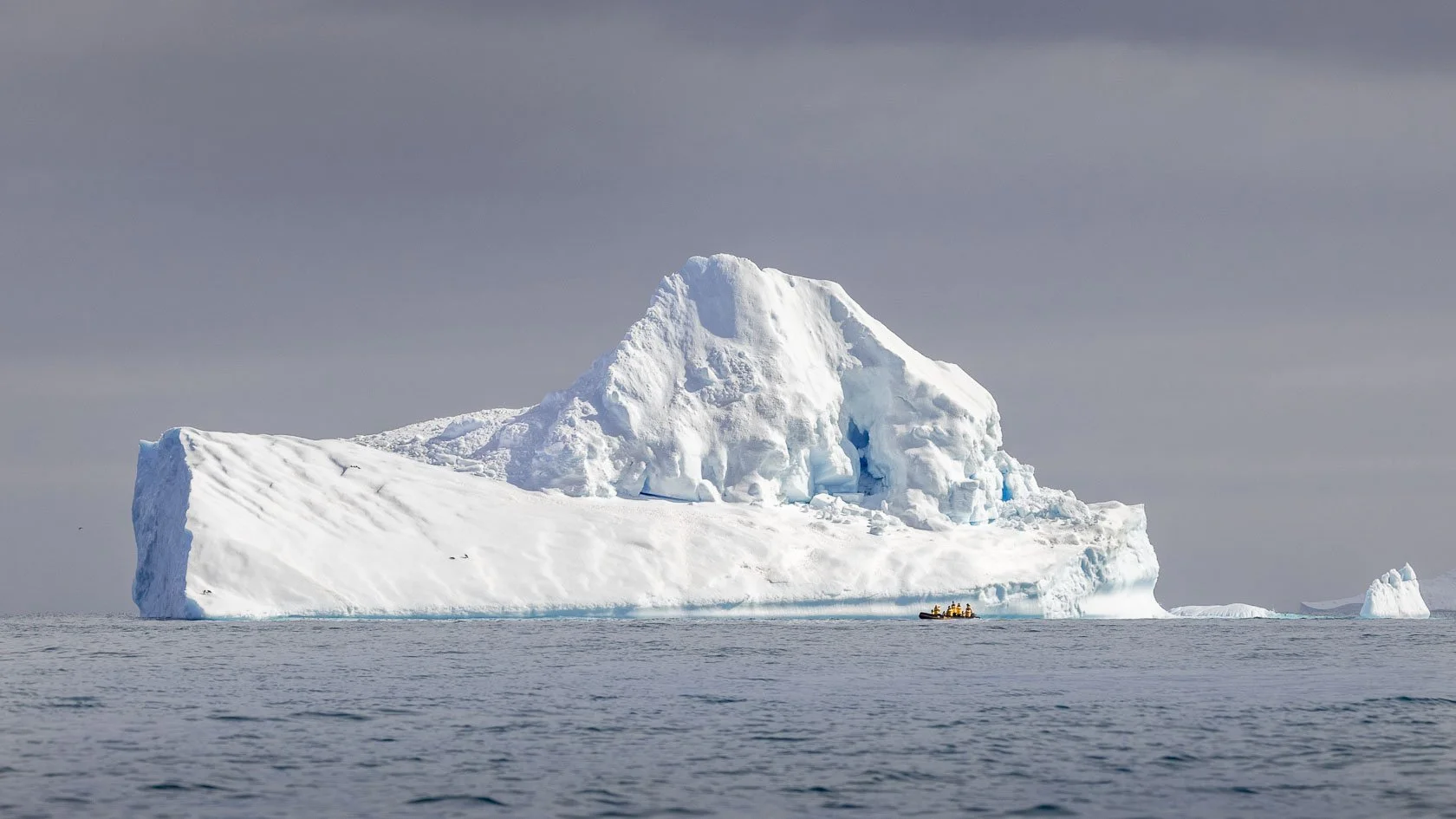 Zodiac in front of iceberg